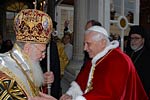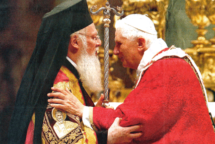 [GH] Zum Fest des hl. Apostels Andreas, des Bruders des hl. Petrus, besuchte Papst Benedikt XVI. von Rom am 30. November den Ökumenischen Patriarchen von Konstantinopel, Bartholomaios I. Damit begegneten sich die herausragendsten Vertreter der Kirche Jesu Christi in West und Ost im Geist gegenseitiger Ehrerbietung und Liebe. --