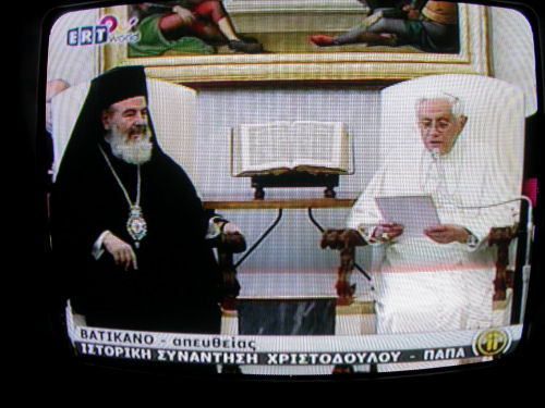Es war dies die erste Begegnung des Papstes mit dem orthodoxen Primas Griechenlands. In seiner Ansprache sagte Papst Benedikt: "Wir sollten dringend gemeinsame pastorale Aktionen durchführen, um unseren Zeitgenossen ein Zeugnis der Einigkeit zu geben und um uns wirklich fähig zu machen, Zeugnis von unserer Hoffnung zu geben. Ihr Besuch in Rom ist ein Zeichen für dieses gemeinsame Engagement. Die katholische Kirche will alles unternehmen, was ihr möglich ist, um uns wiederanzunähern, damit wir die volle Einheit zwischen Katholiken und Orthodoxen erreichen."