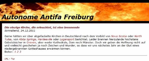 Im vergangenen August profanierte die linksextreme russische Aktionsgruppe Pussy Riot die Christus-Erlöser-Kathedrale von Moskau, die wichtigste Kirche der Russisch-Orthodoxen Kirche, um ihre politischen Ideen zu propagieren. Die Feministinnen, die sich von ihrer Tat nie distanzierten, wurden zu zwei Jahren Haft verurteilt. Von den drei Frauen wurde inzwischen eine aus der Haft entlassen. Im Gerichtssaal trat ein Gruppenmitglied mit Symbolen der kirchenfeindlichen Volksfront des Spanischen Bürgerkrieges auf. Verschiedene Initiativen beriefen sich seit der Verhaftung von Pussy Riot für ihre antichristlichen Aktionen auf die russische Gruppe.