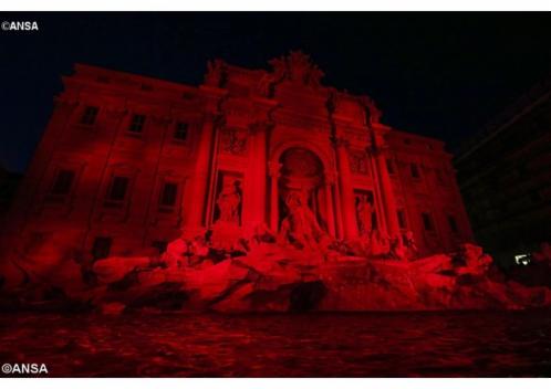 30.04.2016 Roms Trevi-Brunnen in Blutrot: Gedenken an verfolgte Christen